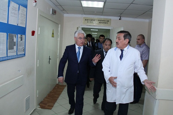 Сегодня глава региона с рабочим визитом посетил Шымкентскую больницу скорой медицинской помощи и ознакомился с работой медицинского учреждения и ходом возведения пристройки к корпусу «В».