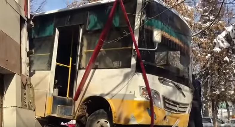 В Шымкенте пассажирский автобус 103 маршрута въехал в здание по улице Туркестанской. К счастью, в салоне было пусто