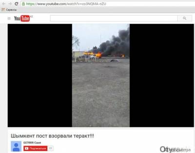 В аккаунте 007RRR Саня на канале YouTube появилось видео под названием «Шымкент пост взорвали теракт!!!», на самом деле не имеющее никакого отношения к Шымкенту. Источник: Отырар ТВ